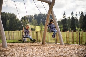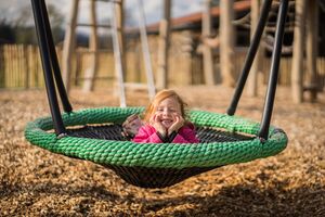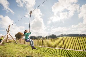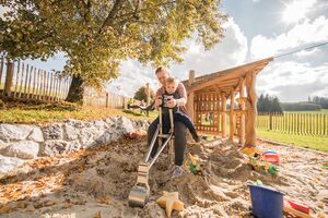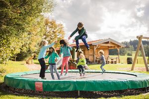 Eine Nest-Brett-Schaukel darf natürlich auch nicht fehlen und der Kletter-Fendt-Traktor mit Rutsche garantiert zudem keine Langeweile. Höhenluft kann bei der Wippe geschnuppert oder zum Balancieren ausgetestet werden. Über ein paar Meter verleiht einem die Seilbahn ein Gefühl des Fliegens und der Freiheit. Das versenkte Riesentrampolin ist bei den Akrobaten immer noch besonders beliebt.