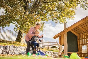 Durch die vielen verschiedenen Sitzmöglichkeiten aber auch in der 360°-Sonnenliege oder der Hängematte können die spielenden Kinder von den Eltern jederzeit bestaunt werden.